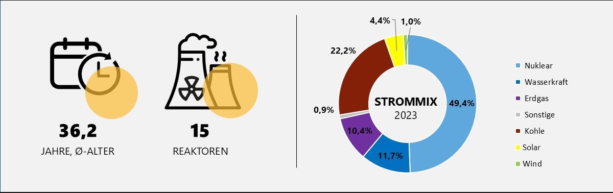 • Das Land deckt die Hälfte seines Strombedarfs mit Kernenergie.